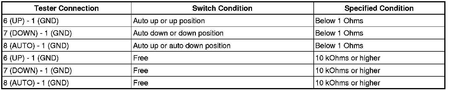 NG -- INSPECT POWER WINDOW REGULATOR SWITCH ASSEMBLY (for Front Passenger Side)