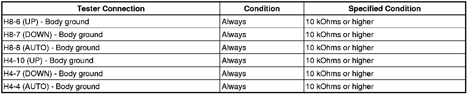 NG -- CHECK HARNESS AND CONNECTOR (MASTER SWITCH - DRIVER SIDE MOTOR)