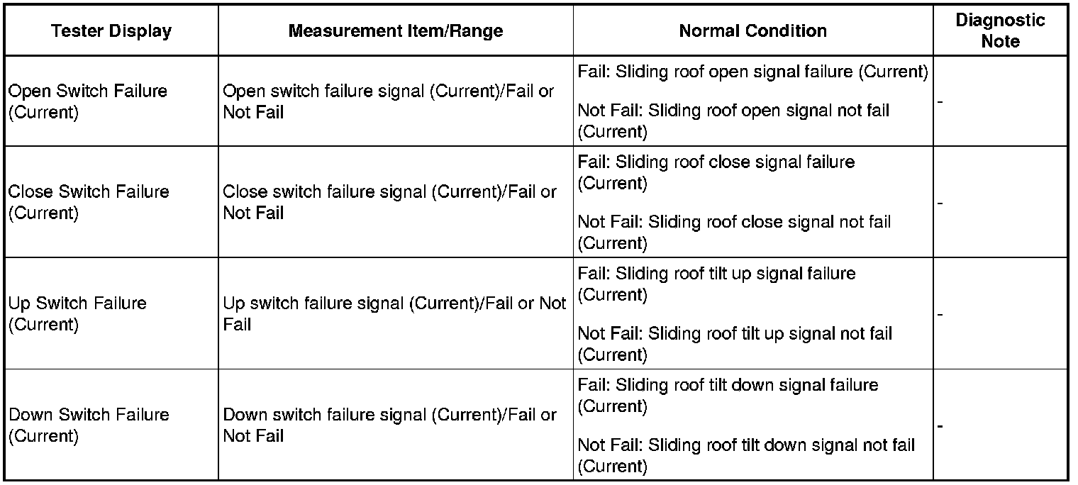 1. READ VALUE USING TECHSTREAM (SLIDING ROOF SWITCH)