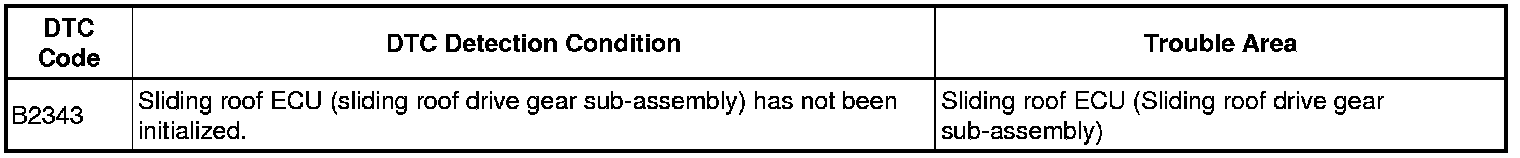 This DTC is output when the sliding roof ECU (sliding roof drive gear sub-assembly) has not been initialized.