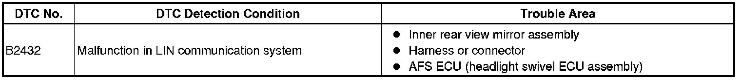 LIGHTING (EXT): LIGHTING SYSTEM: B2432: Lost Communication with Automatic High Beam Sensor