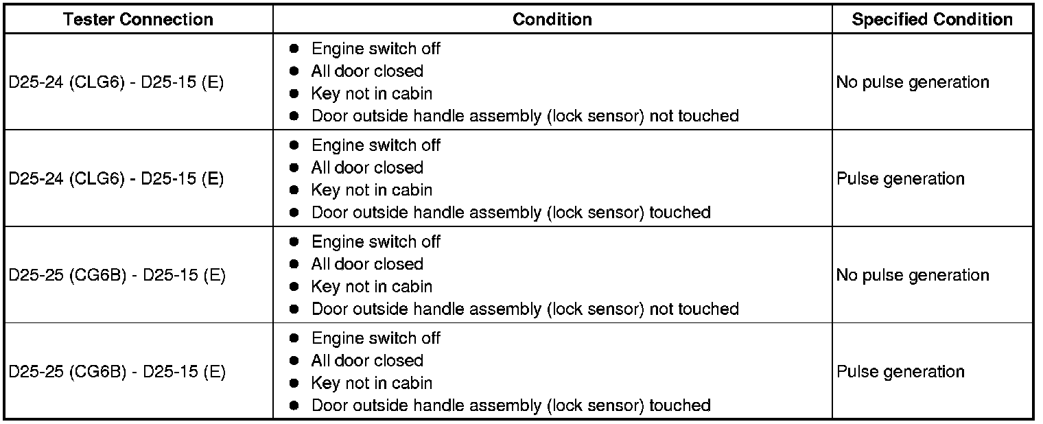 (b) Measure the resistance and check for pulses according to the value(s) in the table below.