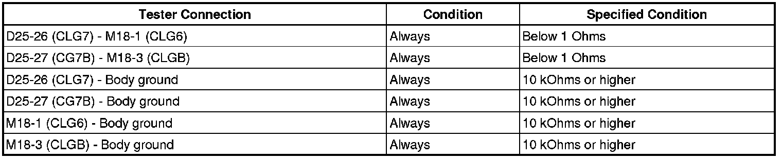 (b) Measure the resistance and check for pulses according to the value(s) in the table below.