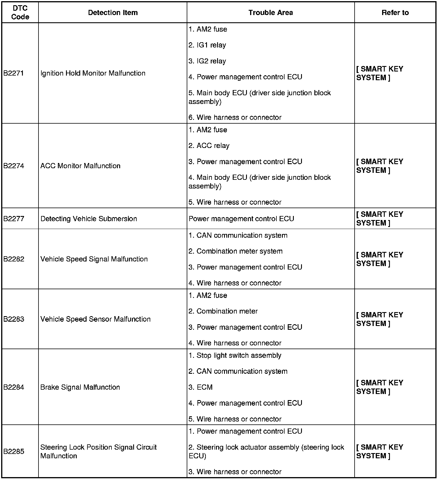 THEFT DETERRENT / KEYLESS ENTRY: SMART KEY SYSTEM (for Start Function): DIAGNOSTIC TROUBLE CODE CHART