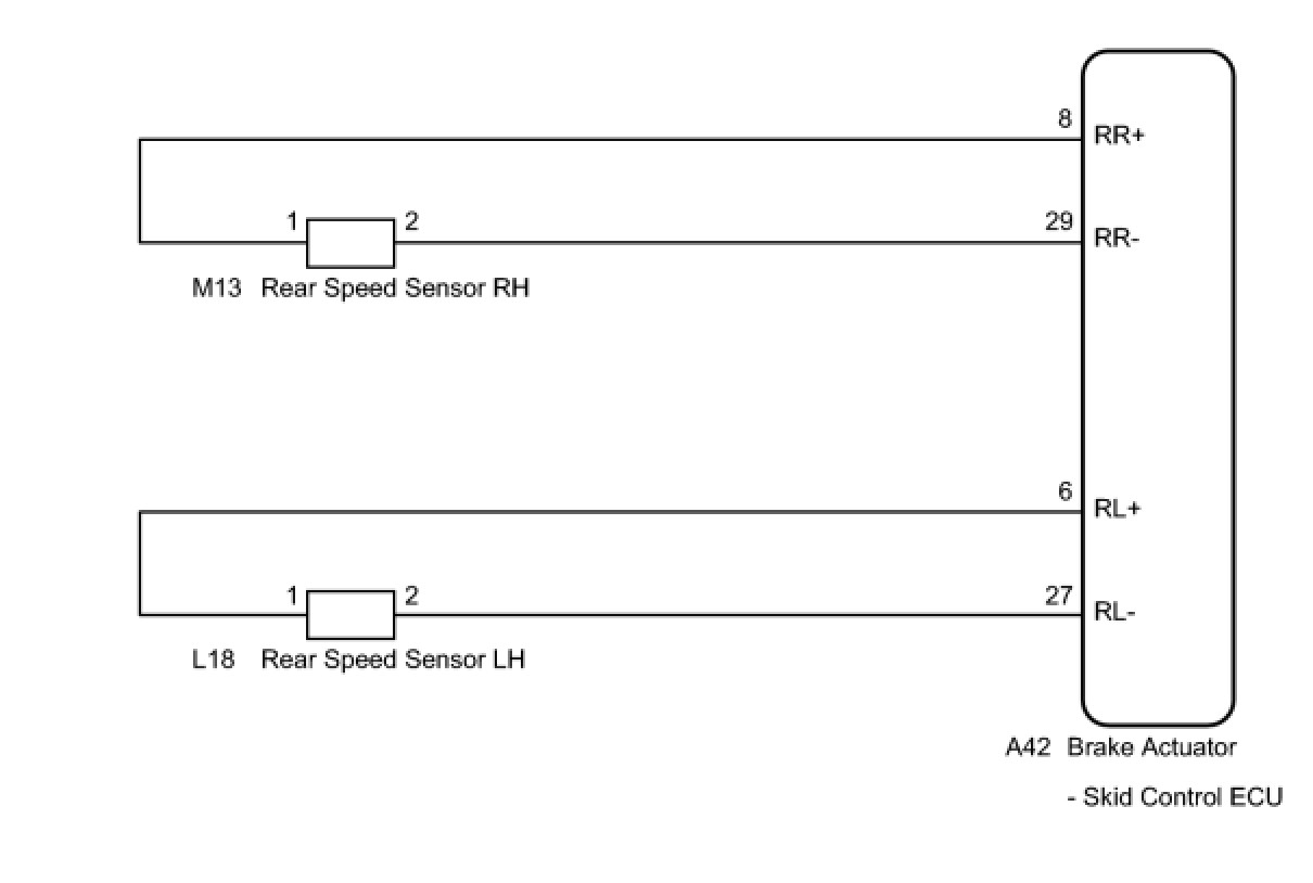 The skid control ECU measures the speed of each wheel by receiving signals from the speed sensor.