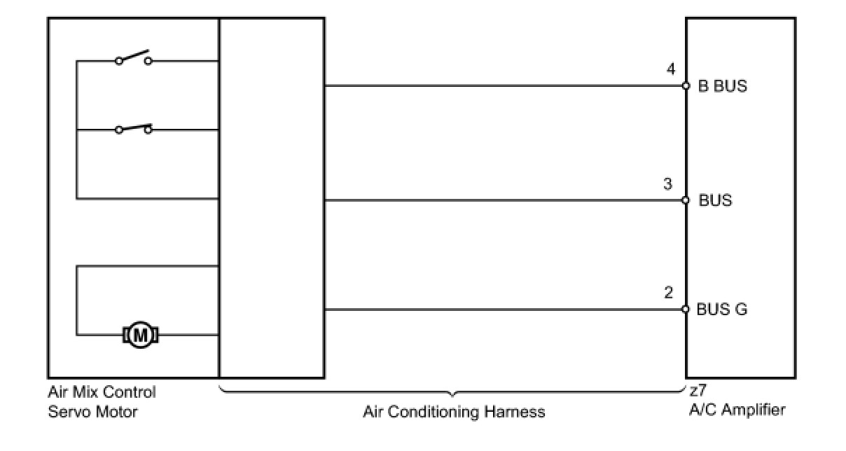 The A/C amplifier communicates with the servo through a communication/driver IC and wiring assembly called the air conditioning harness.