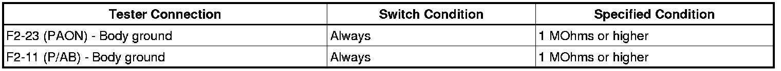7. CHECK PASSENGER AIRBAG ON/OFF INDICATOR CIRCUIT (SHORT TO GROUND)