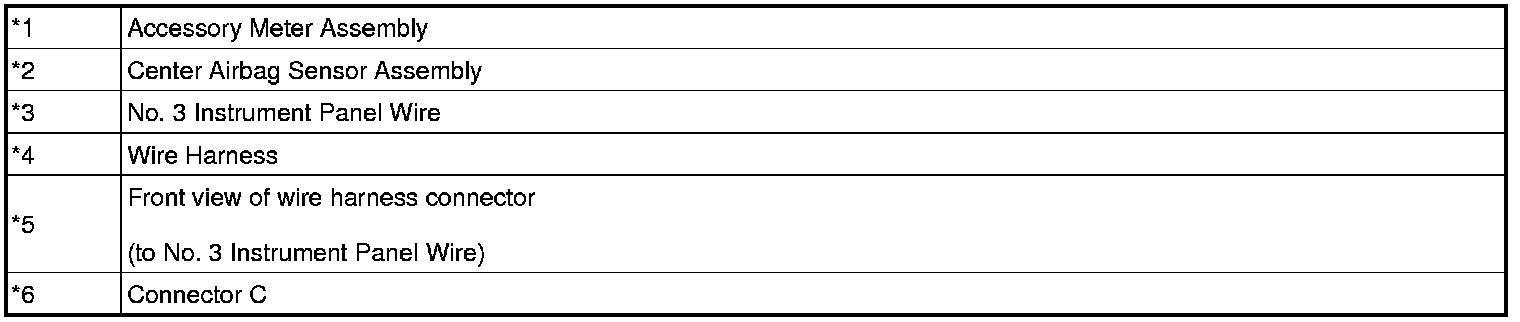 (c) Check that the connectors are properly connected to the center airbag sensor assembly and accessory meter assembly. Also check that the connectors that link the instrument panel wire, No. 2 instrument panel wire and No. 3 instrument panel wire are properly connected.