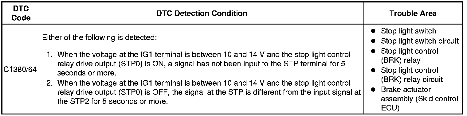 DTC C1380/64 - Stop Light Control Relay Malfunction