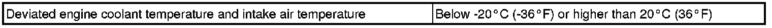 The ECM monitors the difference between the engine coolant temperature and the intake air temperature when the engine is started cold to accurately detect the engine temperature conditions. The monitor runs when the engine started cold after 7 hours or more have elapsed since the engine was stopped (ignition switch turned off) on the previous trip. If the difference between the engine coolant temperature and the intake air temperature on a cold start exceeds 20°C (36°F), the ECM interprets this as a malfunction in the engine coolant temperature sensor circuit and intake air temperature sensor circuit, and stores the DTC.