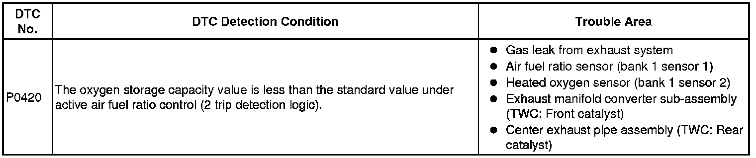 1AR-FE ENGINE CONTROL: SFI SYSTEM: P0420: Catalyst System Efficiency Below Threshold (Bank 1)
