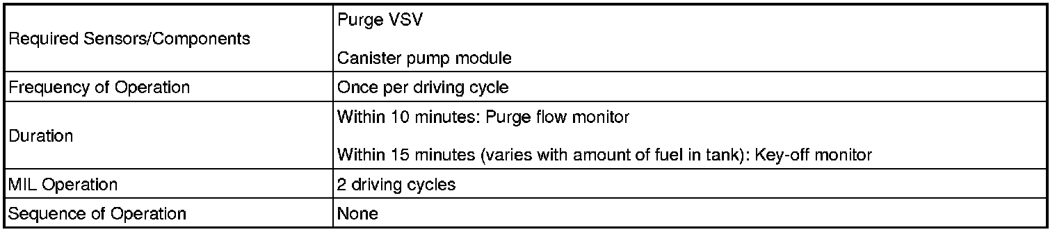 The purge flow monitor consists of two monitors. The 1st monitor is conducted every time and the 2nd monitor is activated if necessary.