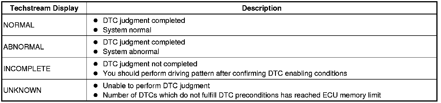 20 If the test result is INCOMPLETE or UNKNOWN and no pending DTC is output, perform a universal trip and check for permanent DTCs DTC Check / Clear.