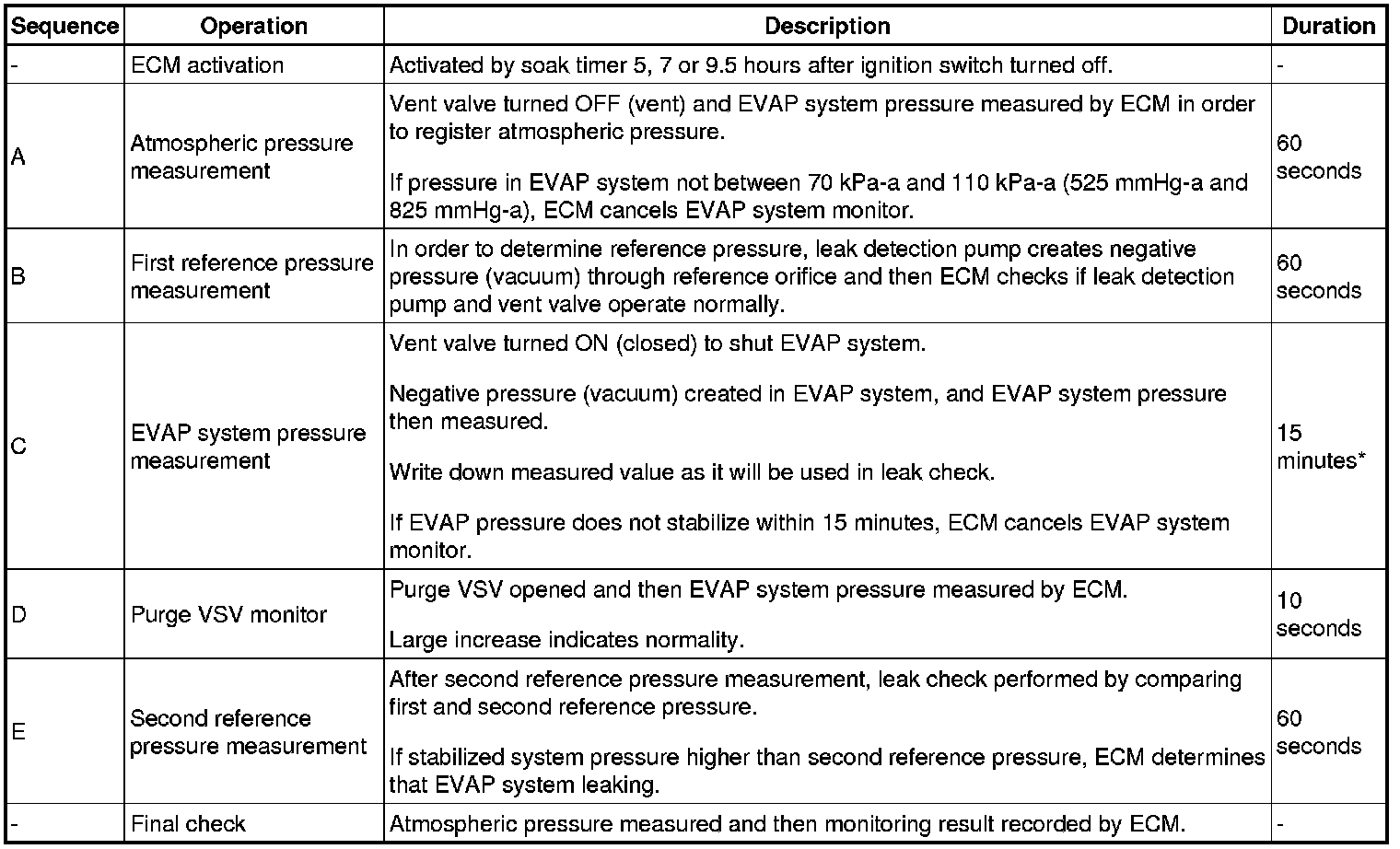*: If only a small amount of fuel is in the fuel tank, it takes longer for the EVAP pressure to stabilize.