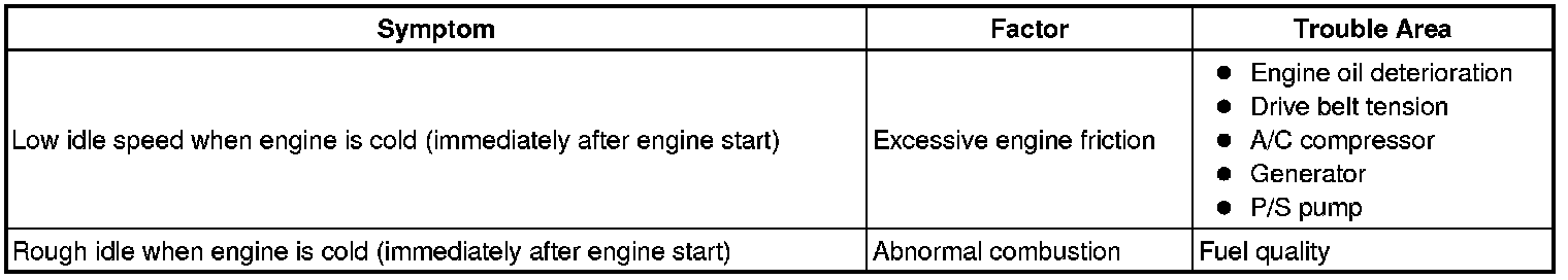 - DTC P050B may be output when the engine has the symptoms listed below. If necessary, check the trouble areas listed below.