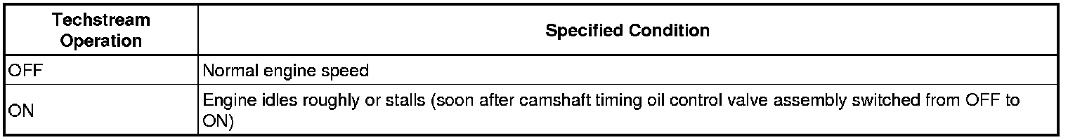 (d) Check the engine speed while operating the camshaft timing oil control valve using the Techstream.