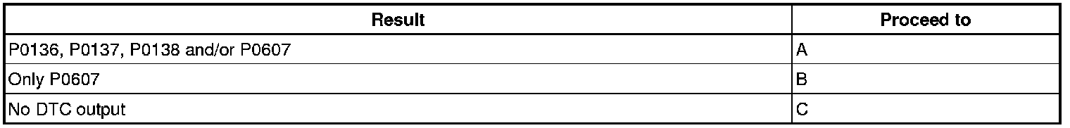 - If DTC P0607 and P0136, P0137 or P0138 are output, the output voltage of the heated oxygen sensor may remain close to 0 V or become high (around 1 V or higher).