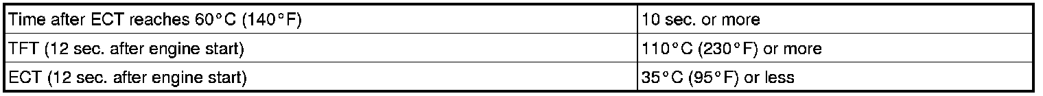After running the vehicle for a certain period, the ATF temperature should increase. If the ATF temperature is below 20°C (68°F) after running the vehicle for a certain period, the TCM interprets this as a fault, and turns on the MIL.