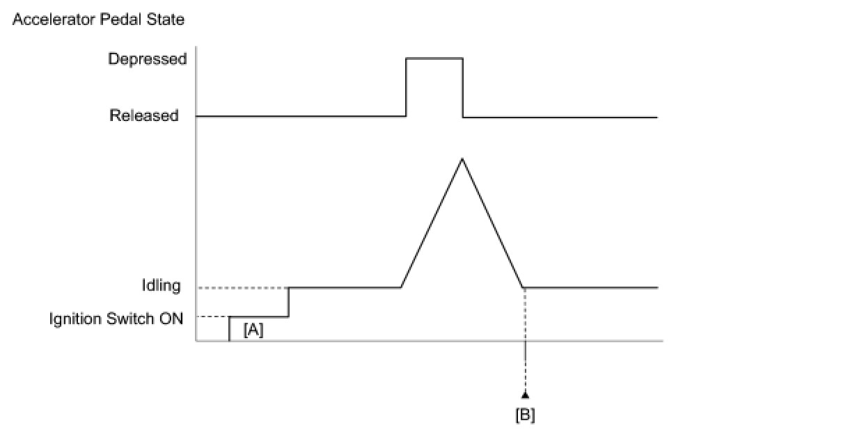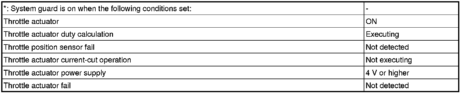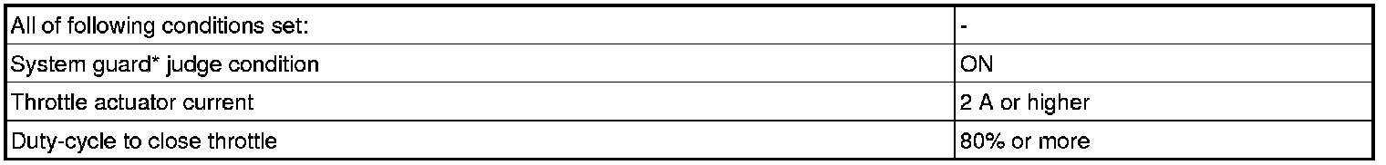 When either of these DTCs, as well as other DTCs relating to Electronic Throttle Control System (ETCS) malfunctions, is stored, the ECM enters fail-safe mode. During fail-safe mode, the ECM cuts the current to the throttle actuator, and the throttle valve is returned to a 6° throttle angle by the return spring. The ECM then adjusts the engine output by controlling the fuel injection (intermittent fuel-cut) and ignition timing, in accordance with the accelerator pedal opening angle, to allow the vehicle to continue running at a minimal speed. If the accelerator pedal is depressed firmly and gently, the vehicle can be driven slowly.