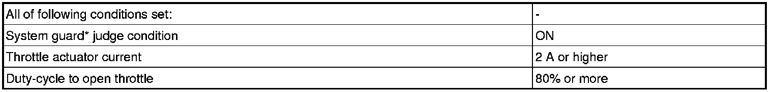 The ECM determines that there is a malfunction in the ETCS when the throttle valve remains at a fixed angle despite a high drive current from the ECM. The ECM illuminates the MIL and stores a DTC.
