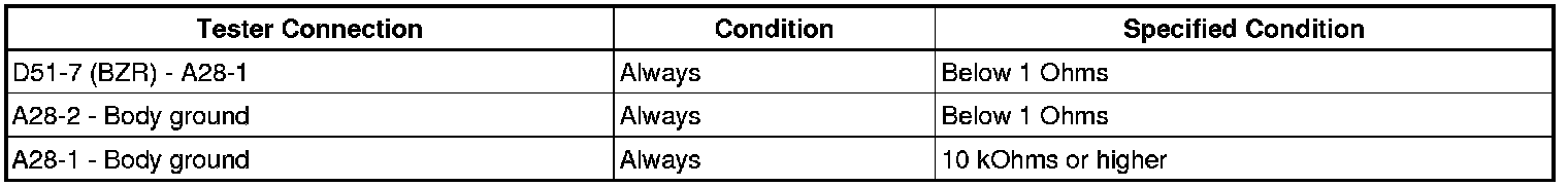 - The buzzer excitation circuit is built into the main body ECU (driver side junction block assembly), not into the buzzer itself.