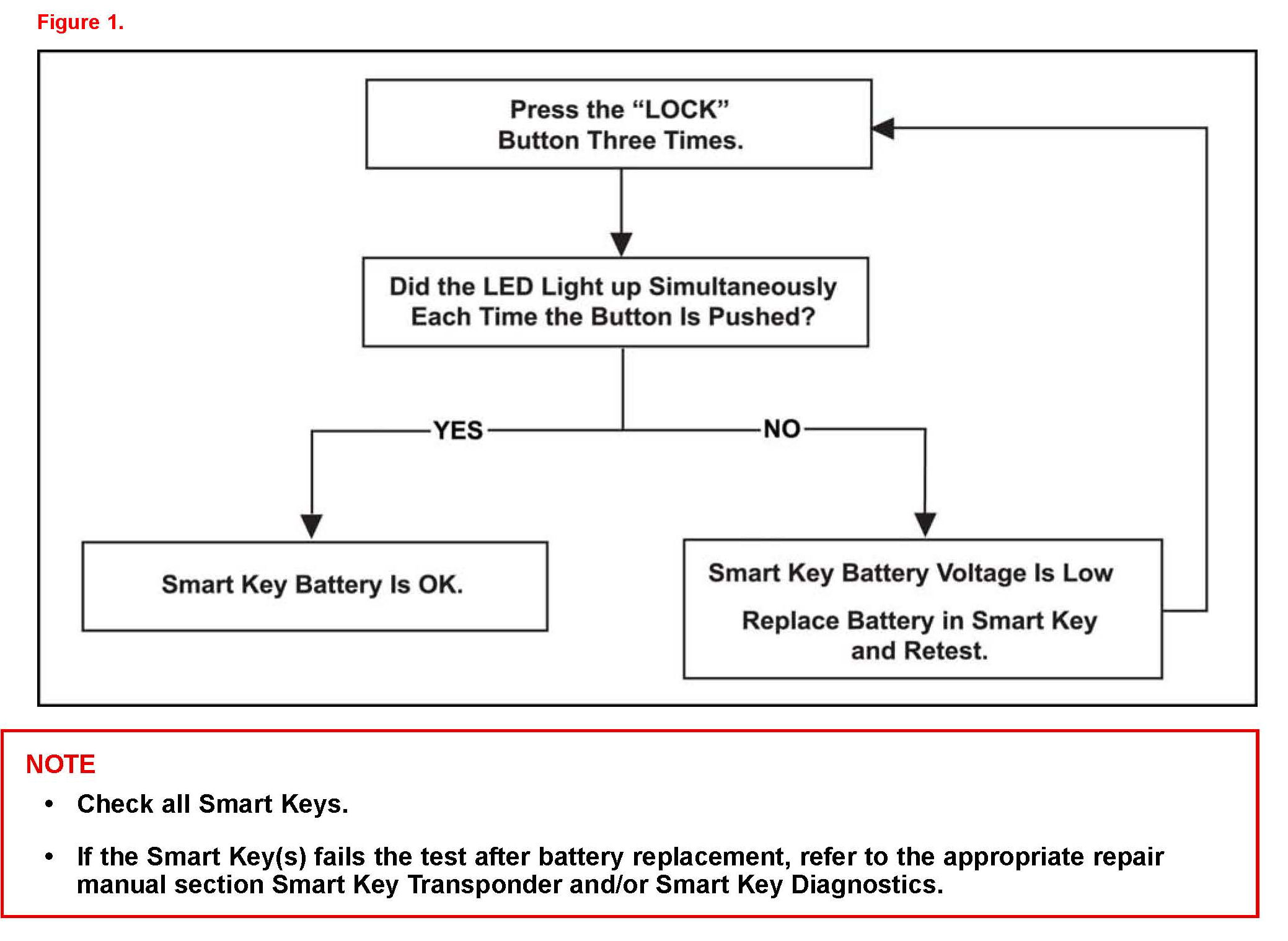 Use the flowchart to test the Smart Key battery.
