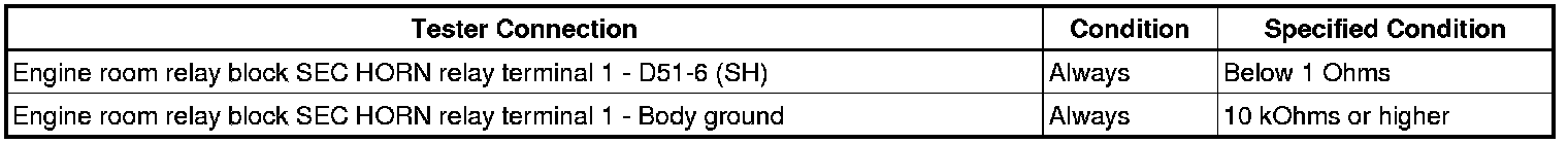 7. CHECK HARNESS AND CONNECTOR (SEC HORN RELAY - SECURITY HORN ASSEMBLY)