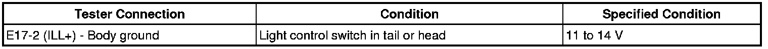 (a) Check if the illumination for the navigation receiver assembly, steering pad switch, glove box or others (hazard switch, transmission control switch, etc.) comes on when the light control switch is turned to the tail or head position.