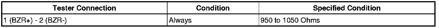 If the result is not as specified, replace the power back door warning buzzer.