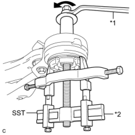 (b) Using SST, remove the front suspension member body mounting front cushion.