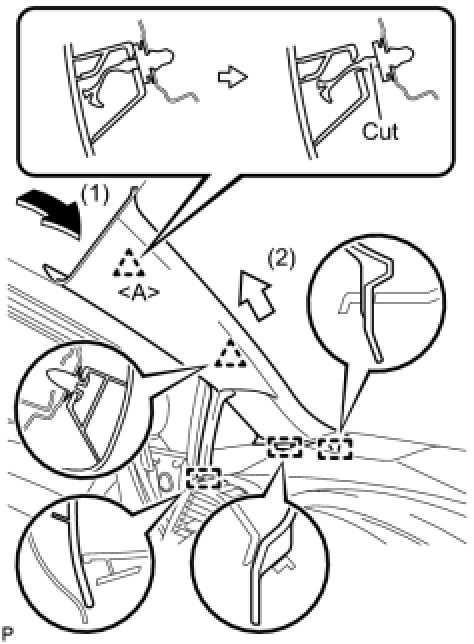 (a) Pull the upper part of the garnish toward the inside of the cabin and disengage the 2 clips.