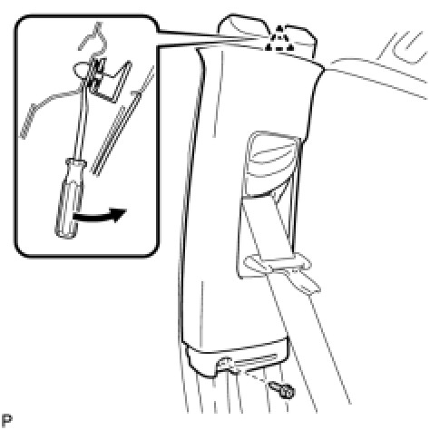 (a) Disengage the 2 claws, guide and 2 clips, and remove the lower center pillar garnish LH as shown in the illustration.