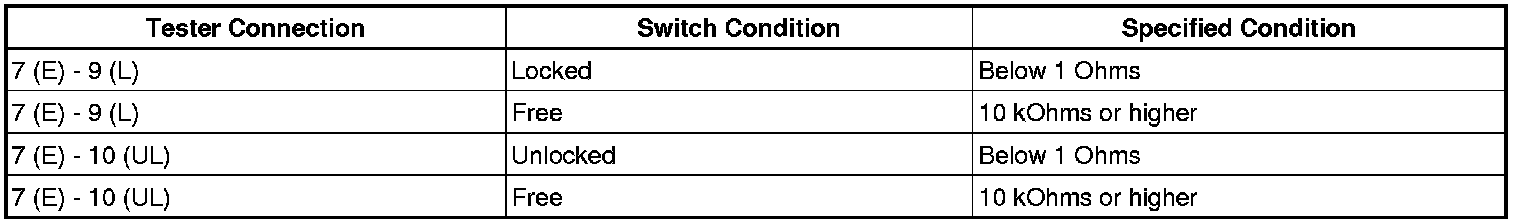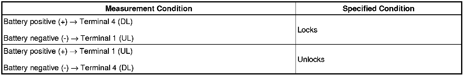 (1) Apply battery voltage and check the operation of the door lock motor.