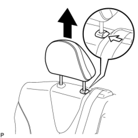 (a) Press the headrest support button and pull up the rear seat headrest assembly as shown in the illustration.