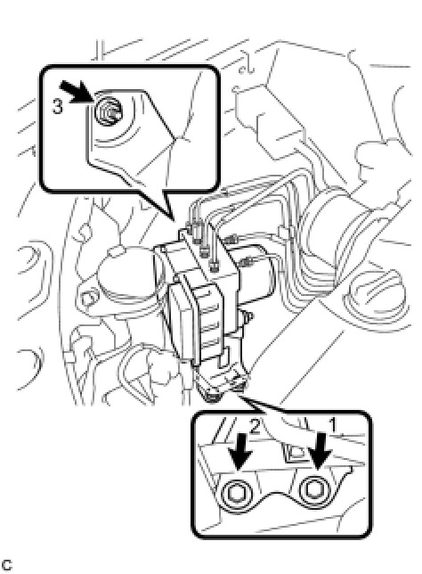 - Tighten the nut and 2 bolts in order from 1 to 3.
