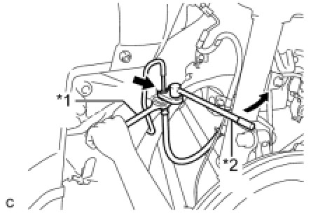 (b) Using a union nut wrench, disconnect the brake line while holding the rear flexible hose with a wrench.