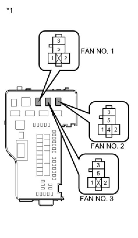 (a) Remove the FAN NO. 1, FAN NO. 2 and FAN NO. 3 relay from the engine room relay block.