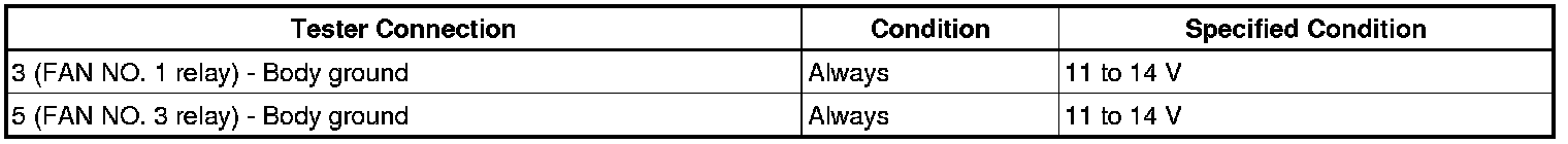 3. INSPECT ENGINE ROOM RELAY BLOCK (FAN NO. 1 OR NO. 3 RELAY VOLTAGE)
