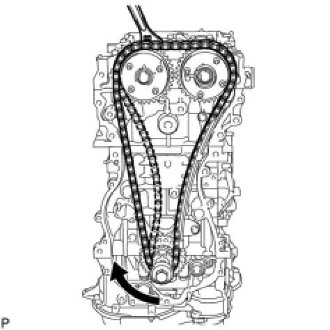 (a) Place the chain onto the camshaft timing gears and crankshaft timing sprocket.