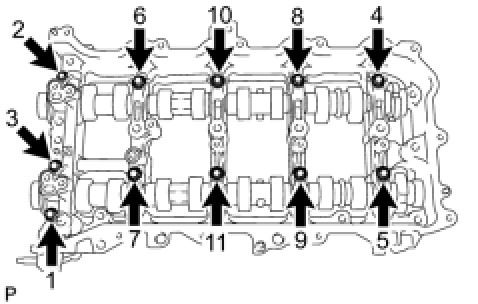 (a) Remove the 11 bearing cap bolts in the sequence shown in the illustration.