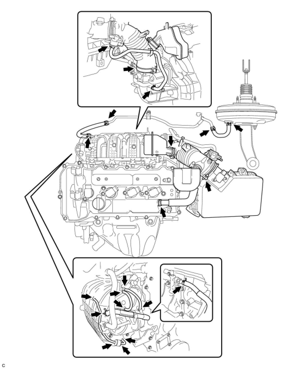 (a) Check that there are no vacuum leaks at the points shown in the illustration.