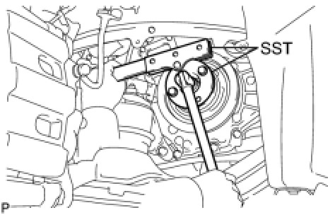 (a) Using SST, hold the crankshaft pulley and loosen the pulley bolt. Further loosen the bolt until 2 or 3 threads are screwed into the crankshaft.