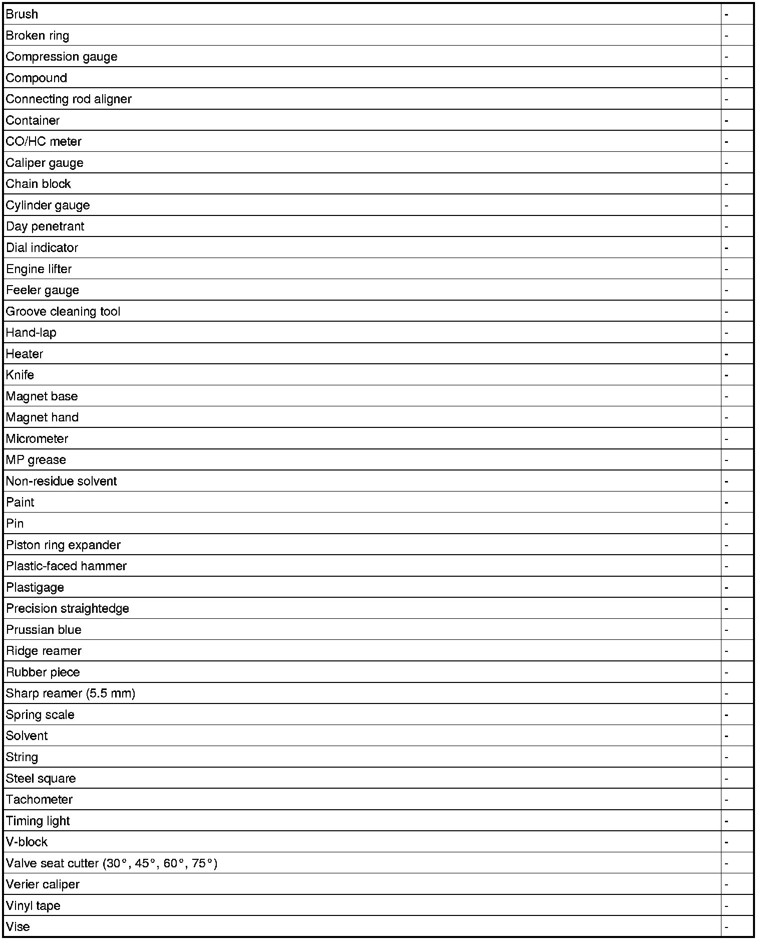 PREPARATION: 1AR-FE ENGINE MECHANICAL: EQUIPMENT