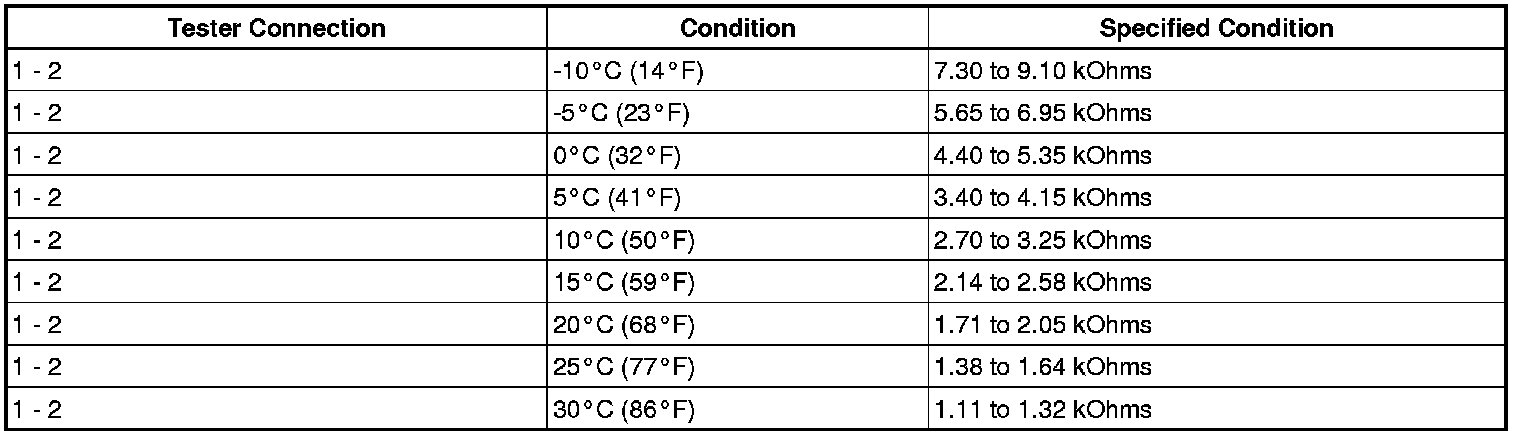 If the resistance is not as specified, replace the evaporator temperature sensor.