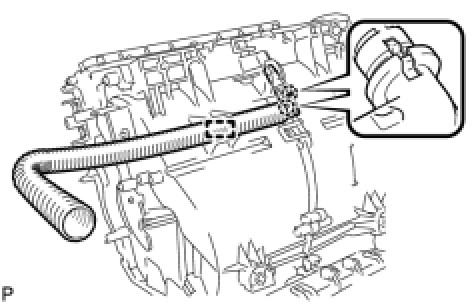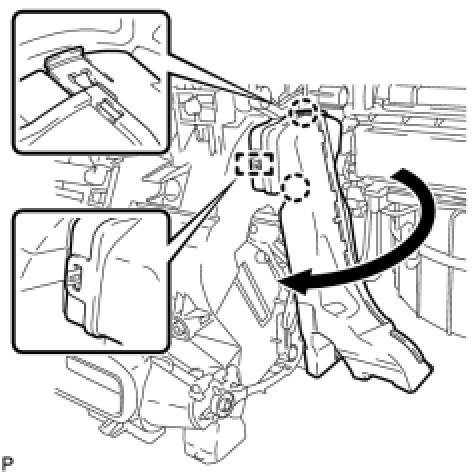 (a) Disengage the 2 claws and guide, and remove the No. 3 air duct sub-assembly as shown in the illustration.