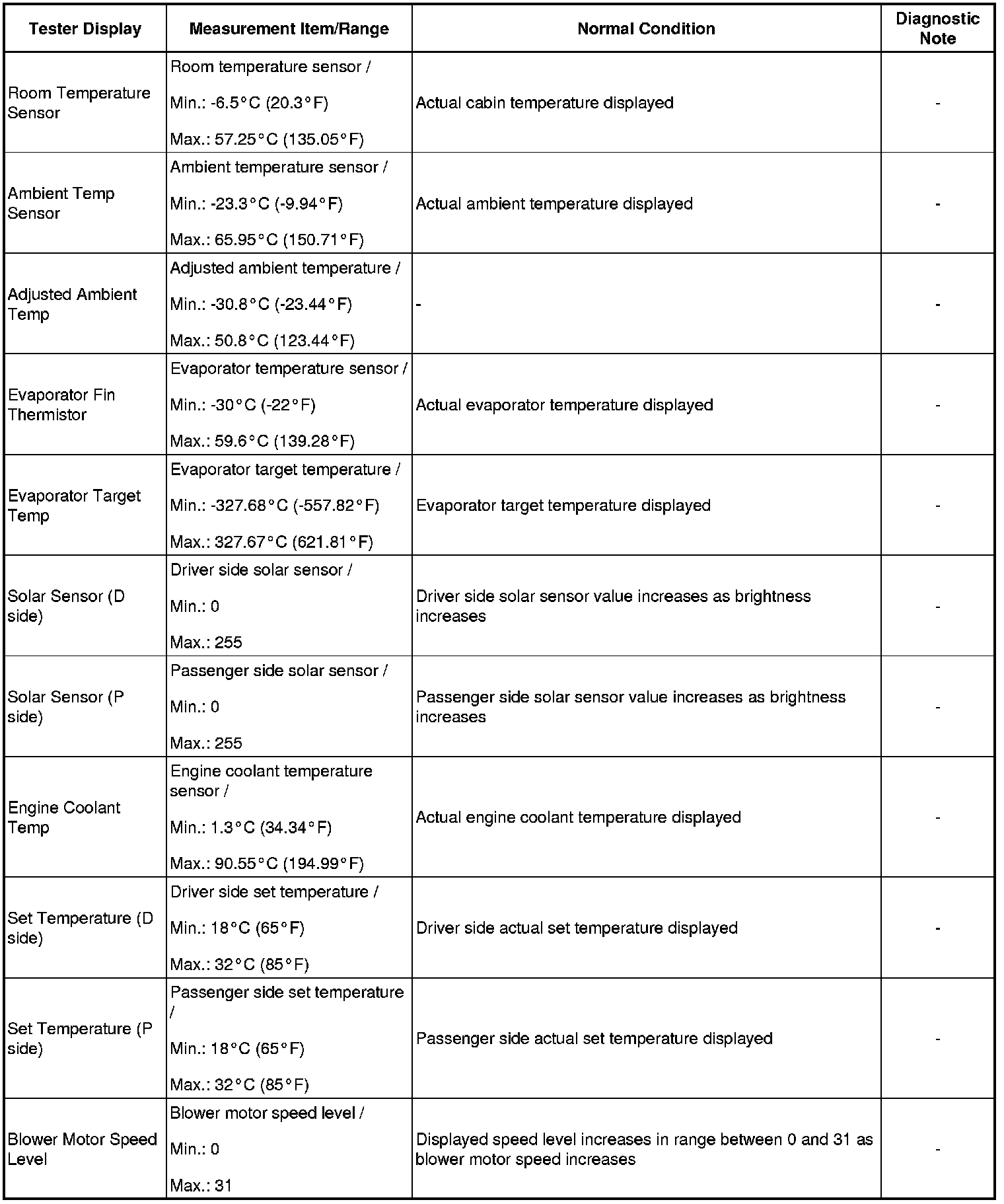(d) Enter the following menus: Body / Air Conditioner / Data List.