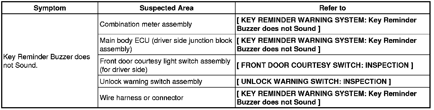 DOOR LOCK: KEY REMINDER WARNING SYSTEM: PROBLEM SYMPTOMS TABLE