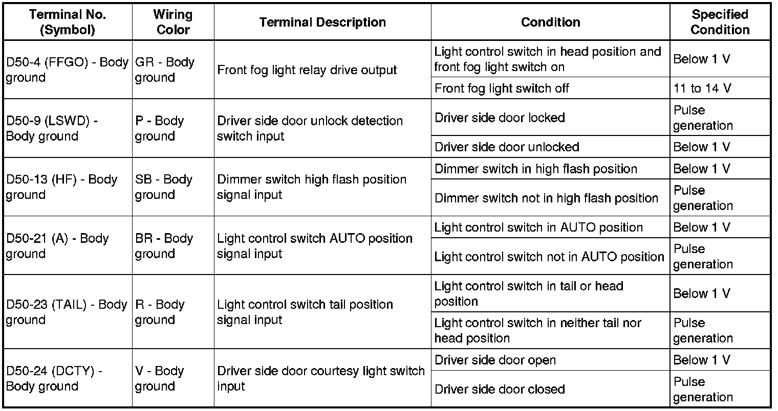 LIGHTING (EXT): LIGHTING SYSTEM: TERMINALS OF ECU