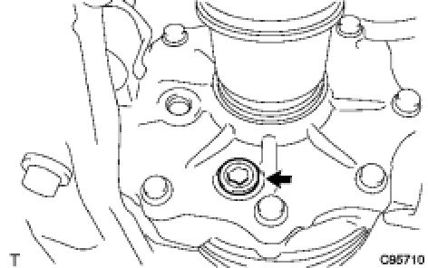 (a) Using a hexagon wrench (10 mm), install the rear differential carrier cover plug and a new gasket.