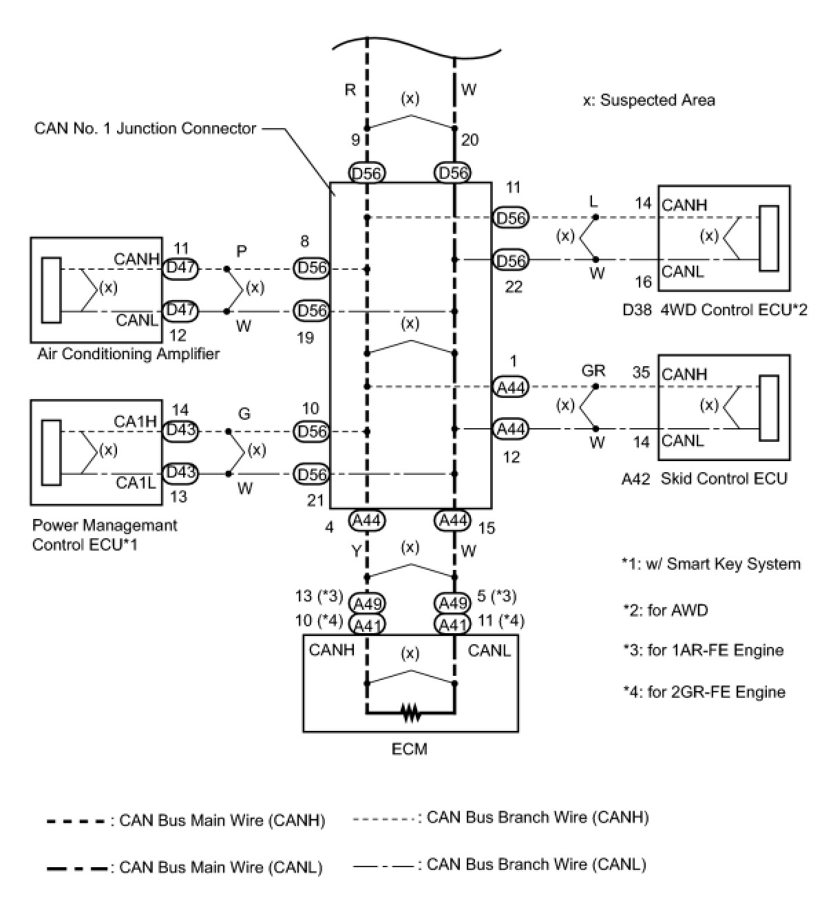 NG -- REPAIR OR REPLACE CAN BUS MAIN WIRE OR CONNECTOR (CAN NO. 2 JUNCTION CONNECTOR - CAN NO. 1 JUNCTION CONNECTOR)